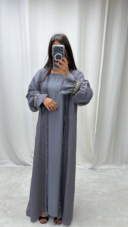 Kimono 3 pièces Dubaï en organza perlé