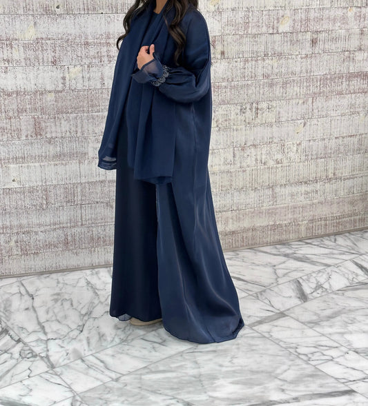 Abaya Kimono 3 pièces en organza – Dubai Dark Blue