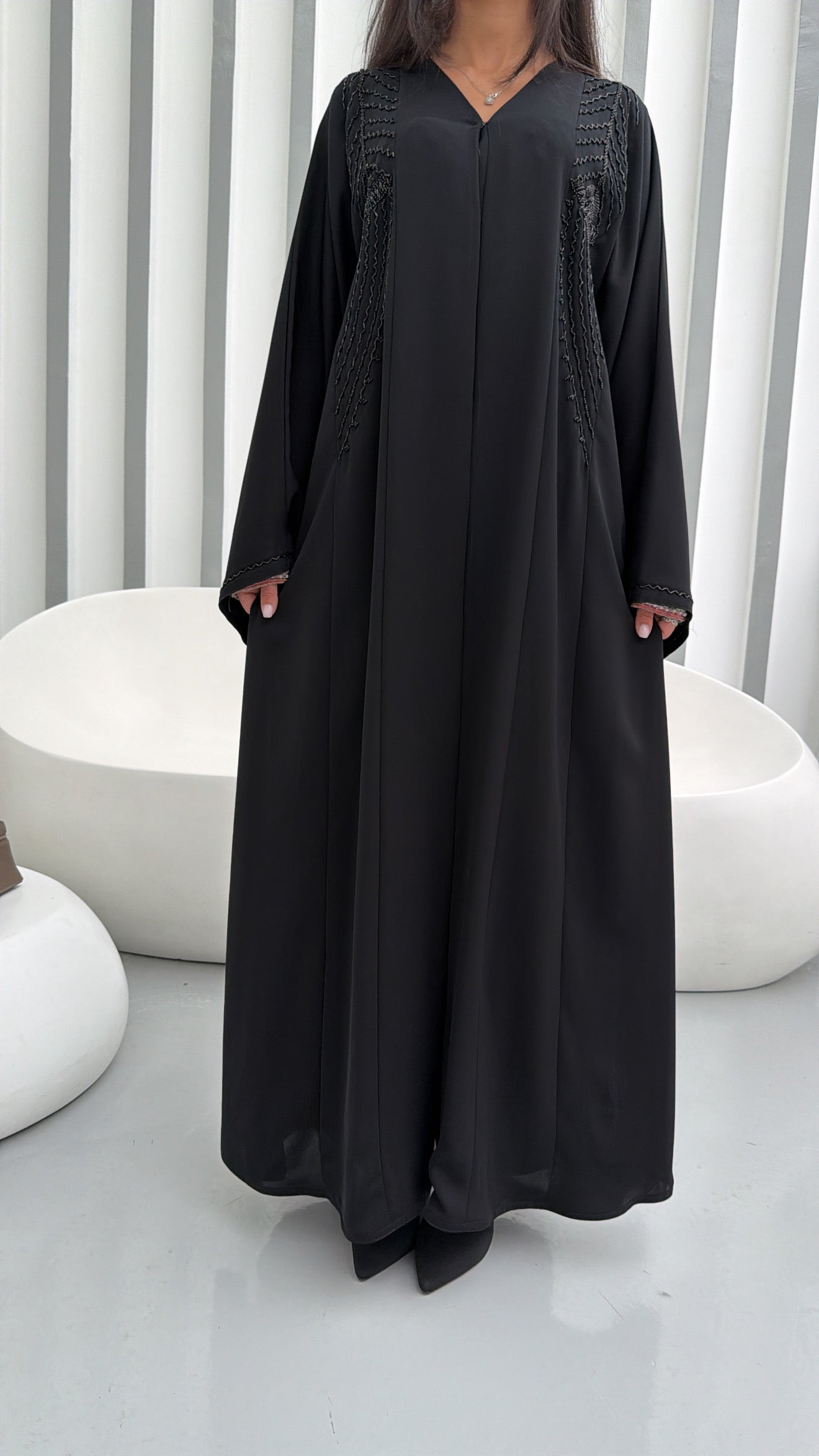 Abaya confectionnée à la main dans notre atelier à Dubaï.