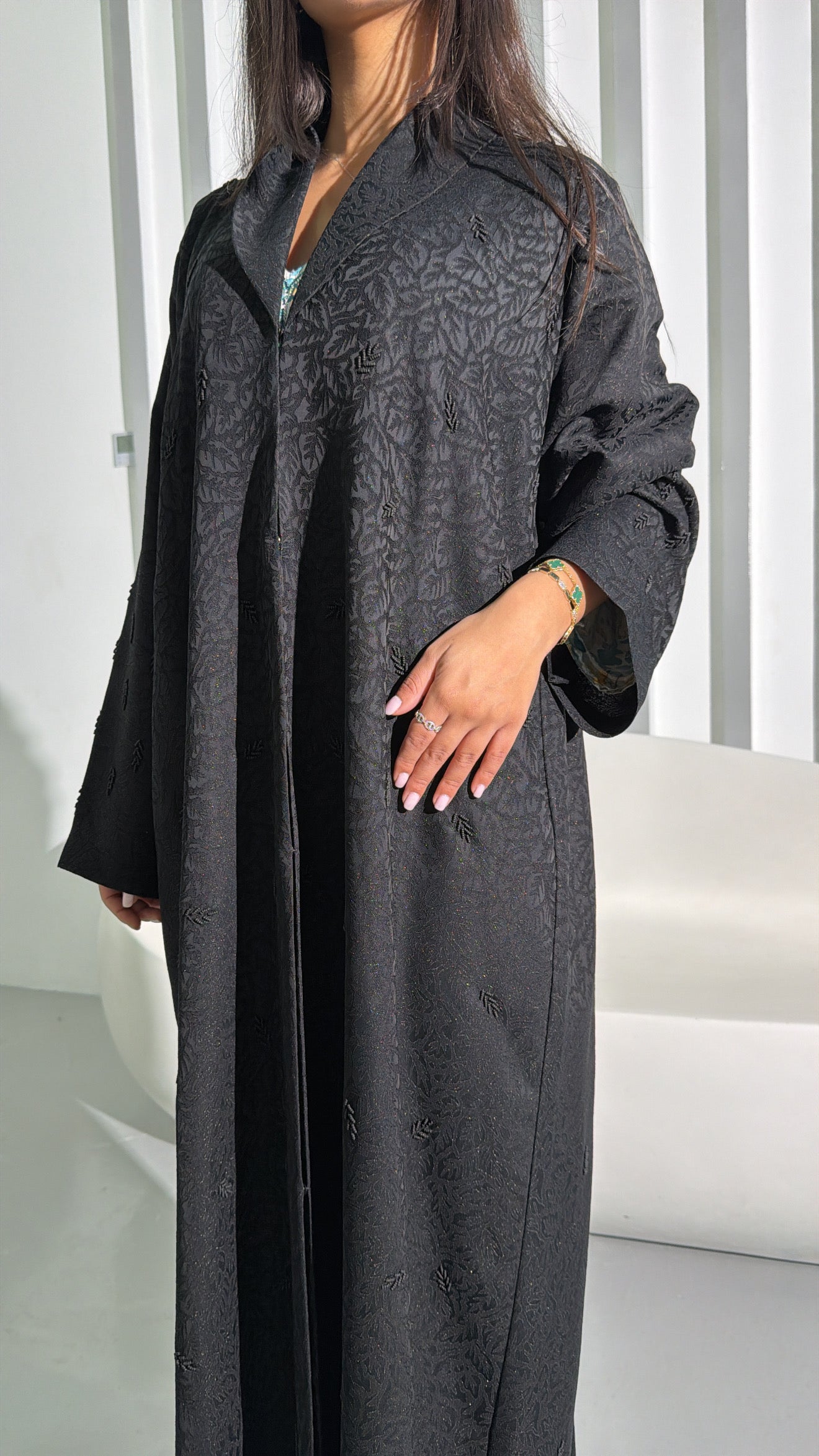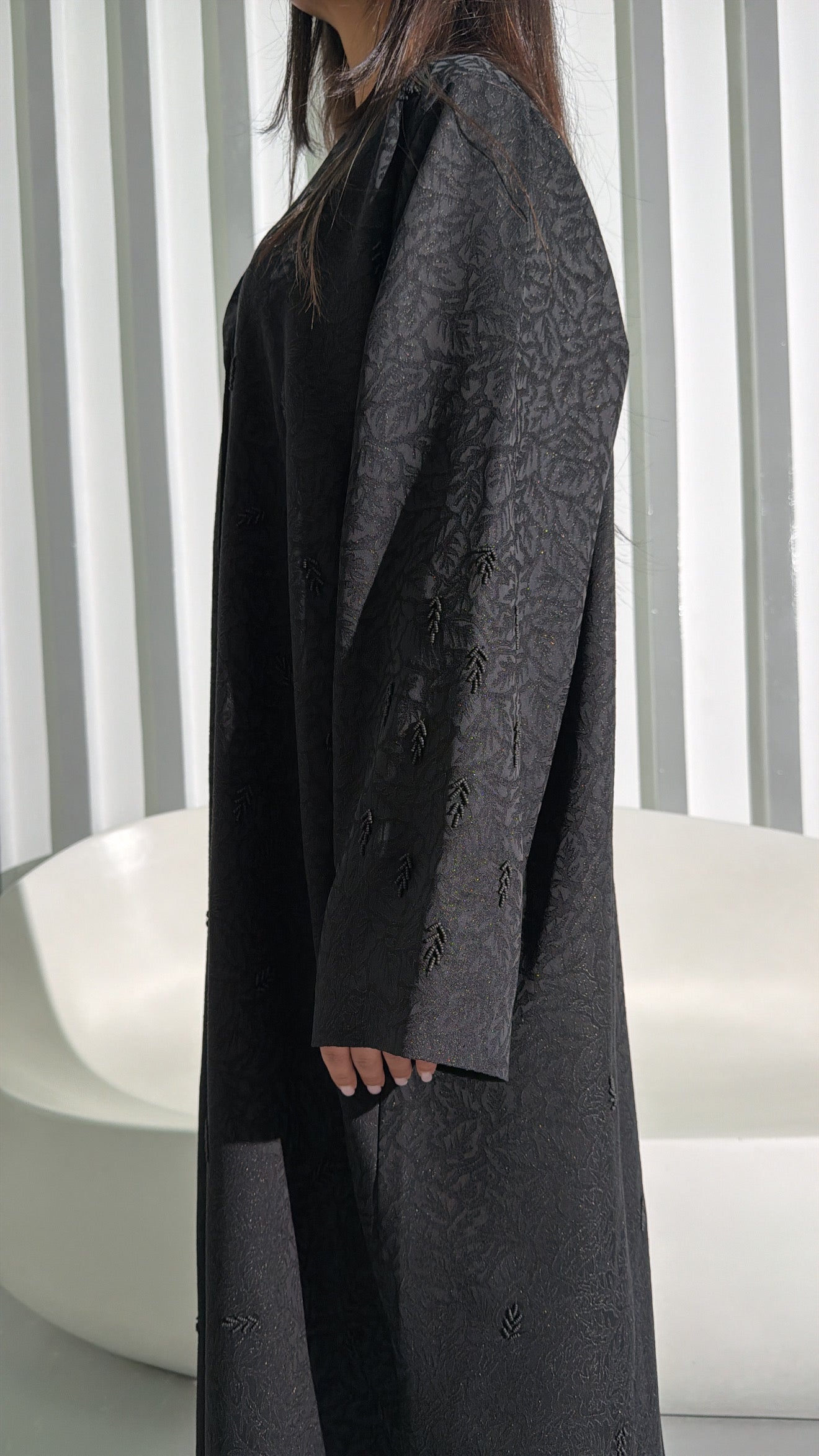 Abaya de collection luxe, confectionnée à la main dans notre atelier à Dubaï.