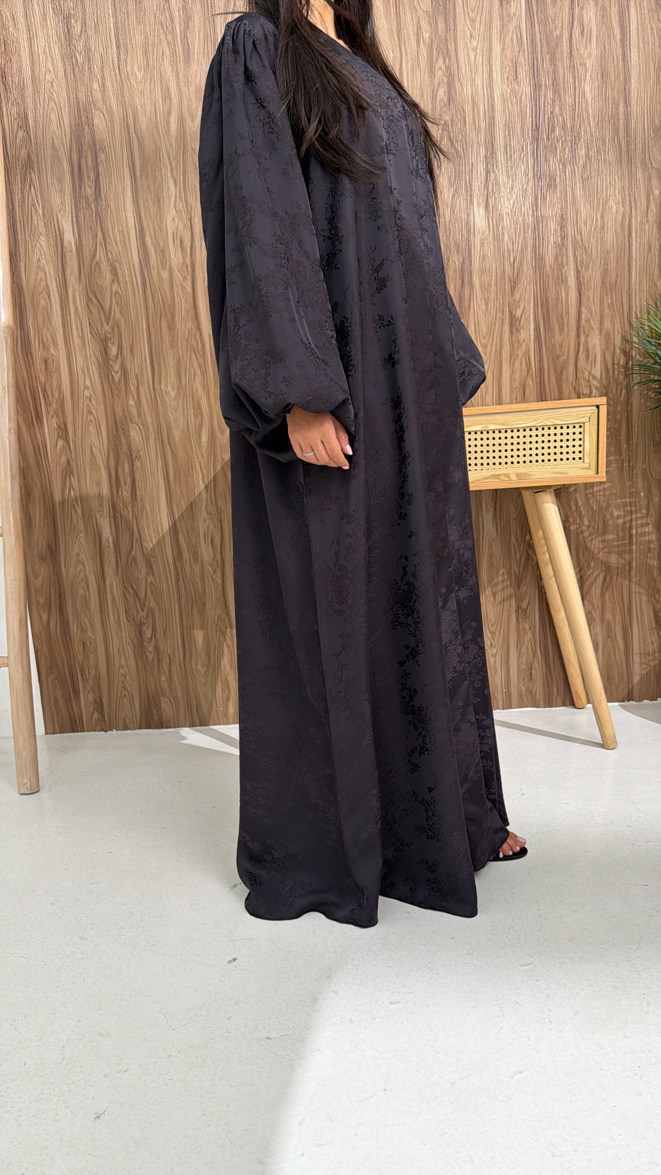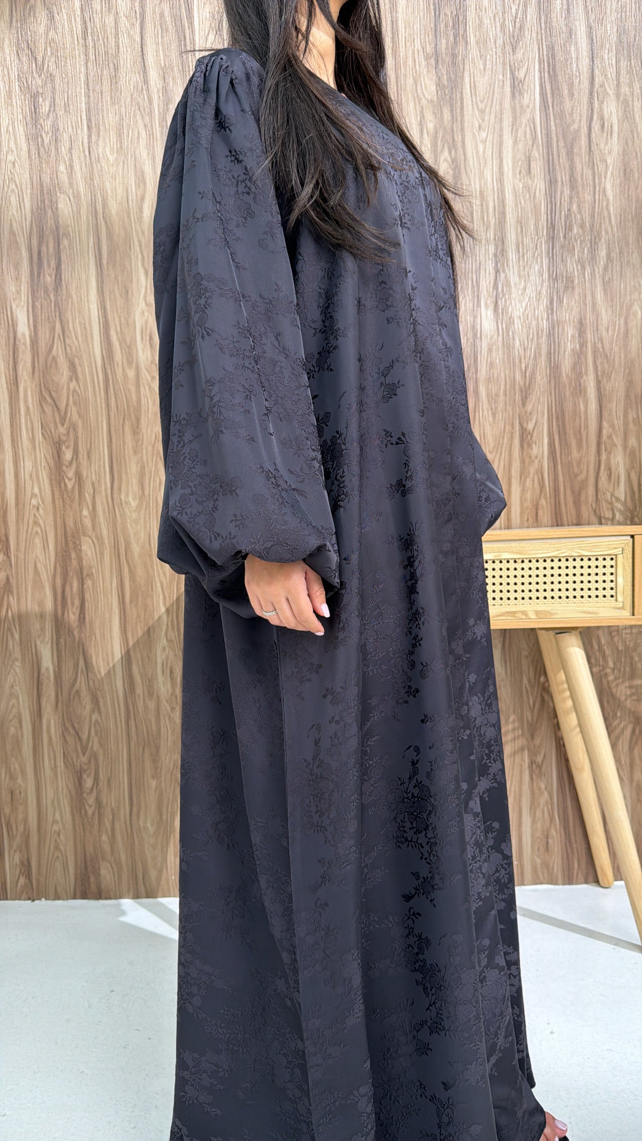 Abaya de collection luxe, confectionnée à la main dans notre atelier à Dubaï.